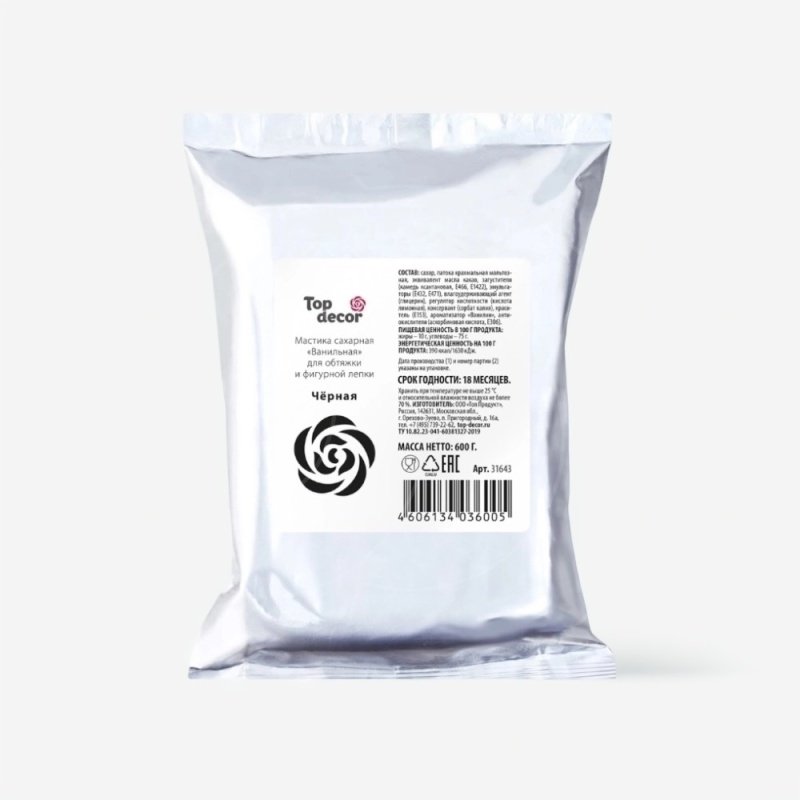 Доставка Мастика кондитерская ванильная Top Decor "Чёрная" 600 г из магазина в вашем городе:
