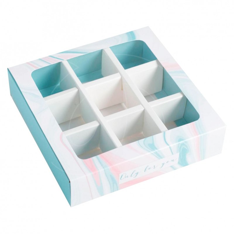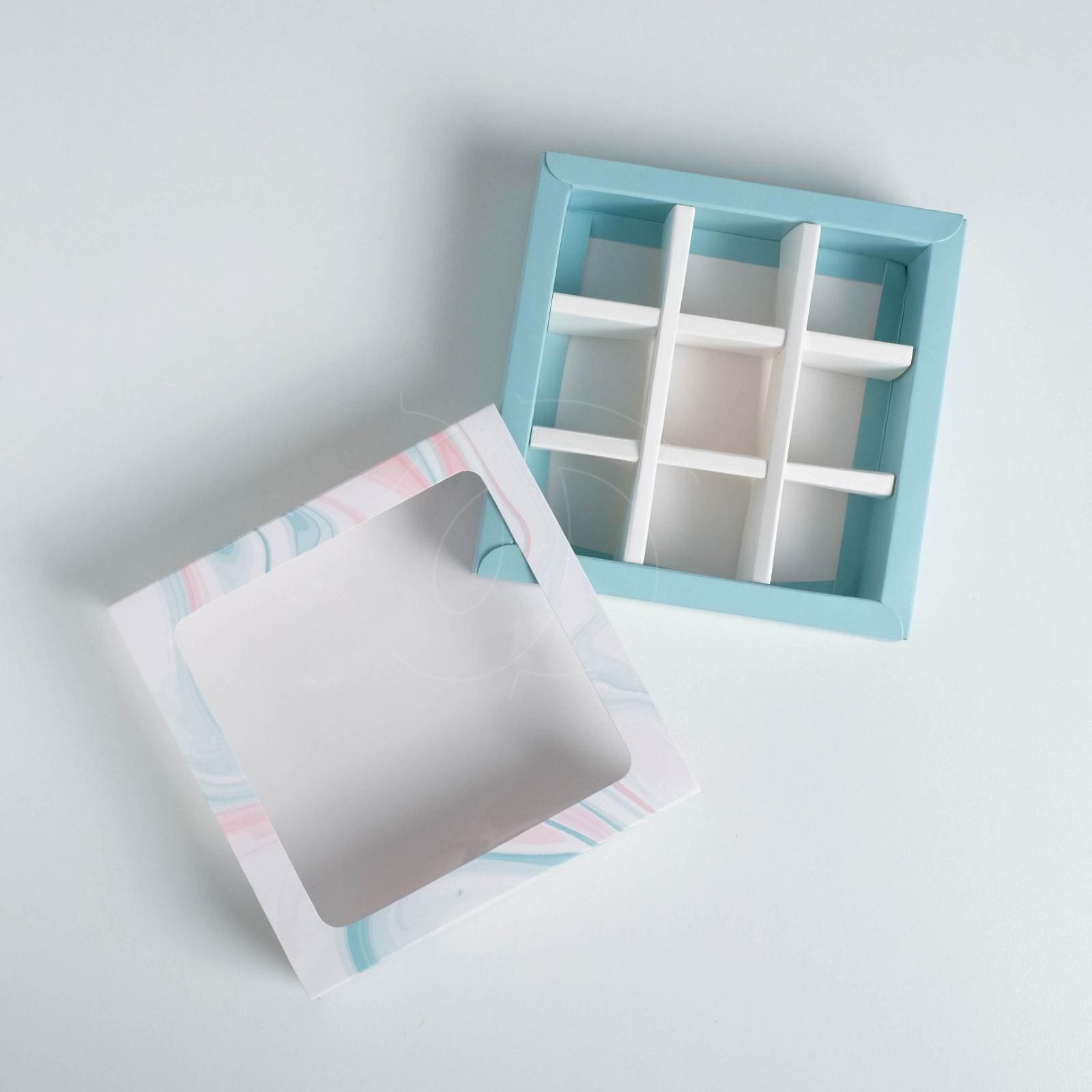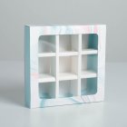 Коробка на 9 конфет с окном "Голубой мрамор"