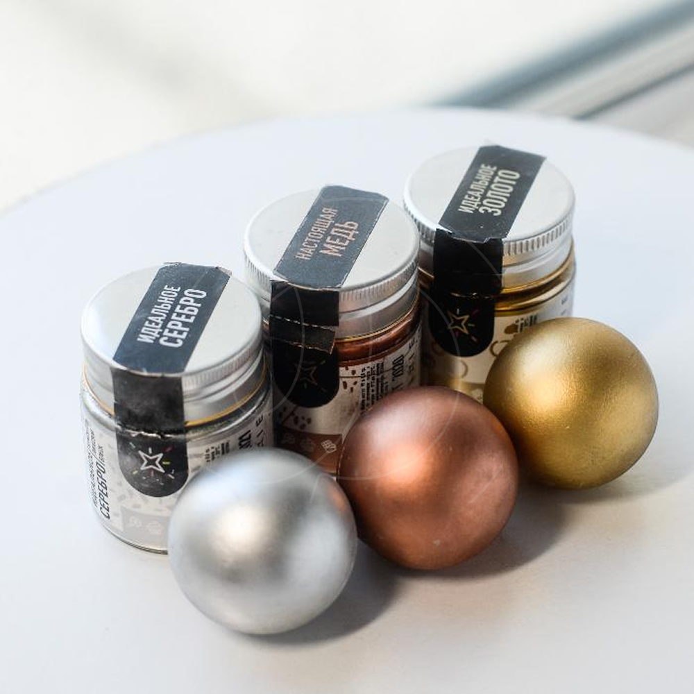 В этом случае мы советуем использовать блеск на не кислой среде: шоколаде, изомальте, шоколадном ганаше, масляном креме, айсинге для пряников и др.