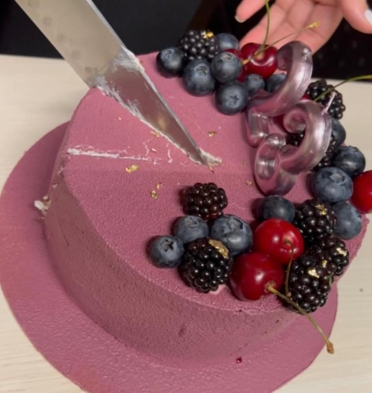 Краскопульт распыляет жидкость каплями, которые на замороженном торте застывают, в итоге получается матовая бархатистая поверхность.