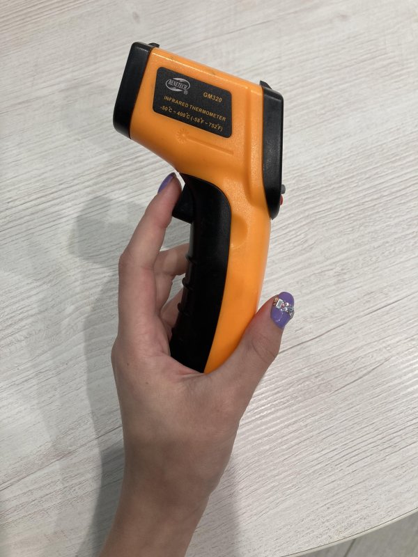 - для начала работы вставьте в пирометр батарею, закройте батарейный отсек. Нажмите курок, пирометр включится. С помощью клавиш подсветки, включения/выключения лазера, установки единиц измерения градусы Цельсия/Фаренгейта произведите настройку;