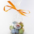 Поместите кулич в бумажной форме внутрь, перевяжите пакет ленточкой или просто завяжите в узел.