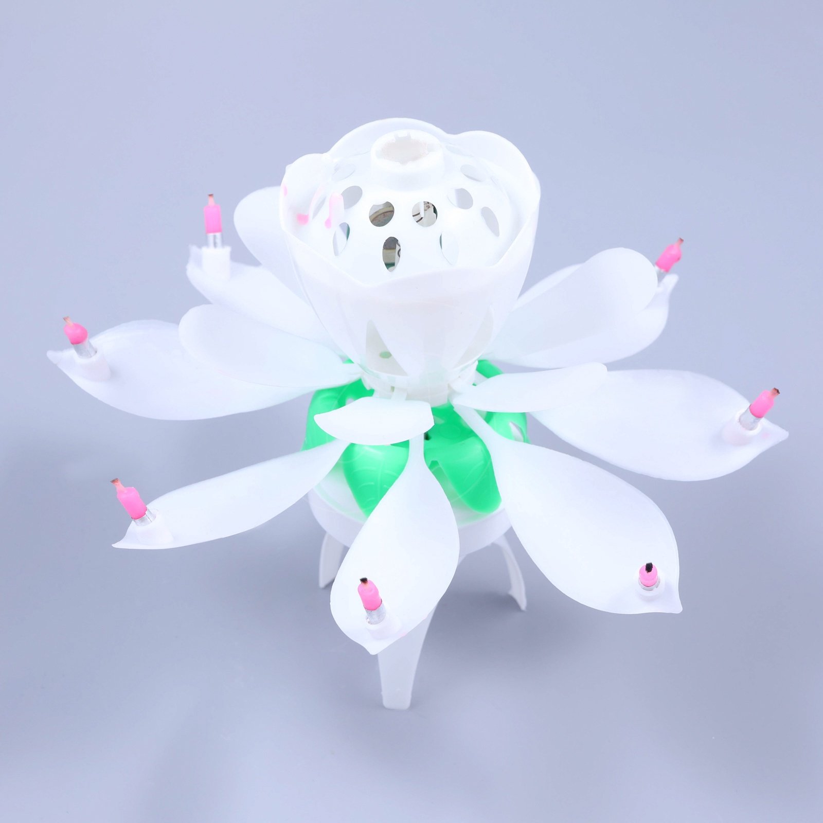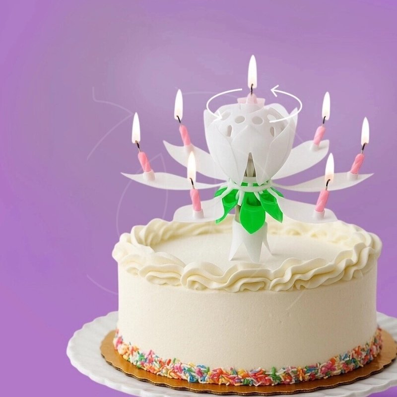 После этого цветок раскроется, загорится 8 дополнительных свечек, заиграет музыка, а тюльпан начнет вращение.
