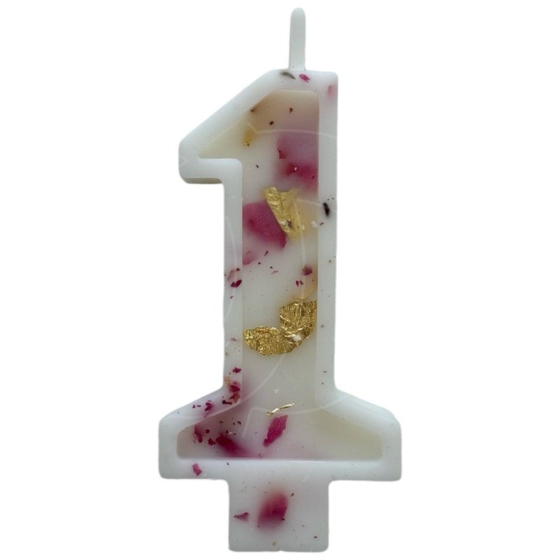 Доставка Свеча декоративная Цифра "1" Белая с розой и поталью из магазина в вашем городе: