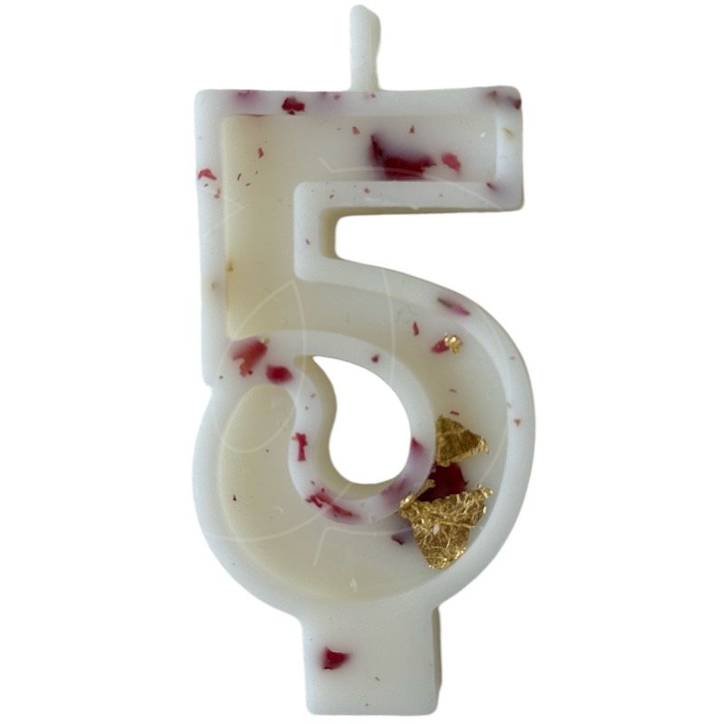 Доставка Свеча декоративная Цифра "5" Белая с розой и поталью из магазина в вашем городе: