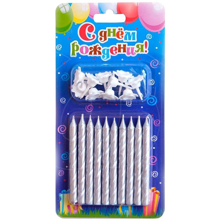 Доставка Свечи декоративные Серебряные завитки 6 см 10 шт из магазина в вашем городе: