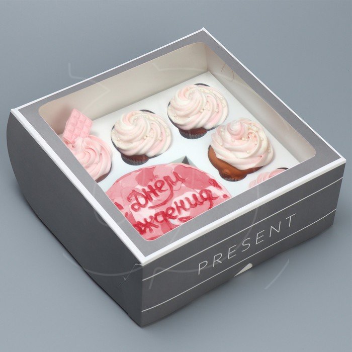 Подарочная коробка предназначена для упаковки бенто-торта и 5 капкейков.